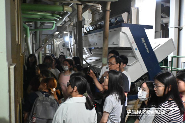 “如何加工出好大米?”“什么是杂交水稻?”“怎么保管好大米?”活动现场,师生一行在公司副总经理周振荣的带领下,先后参观了大米生产车间、自动化精品大米生产车间、省级应急储备大米恒温仓等,近距离了解稻谷生产加工环节的原粮检验、清杂、去石、磁选、色选等质量安全管控方法及工艺设备。