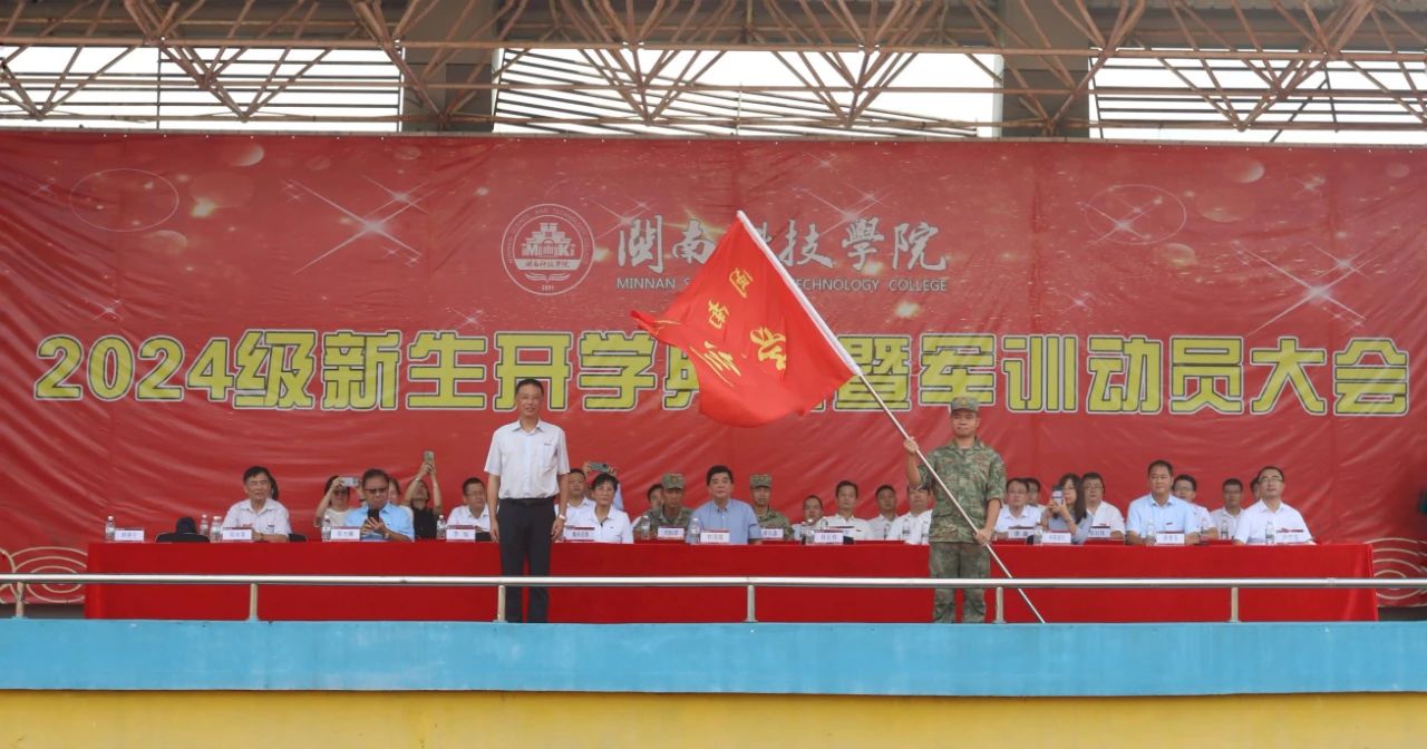典礼上,校领导共同为新生代表们佩戴校徽,并为学生军训团授旗,这也象征着2024级同学们正式步入大学生活,成为乐鱼网页版登录入口_乐鱼(中国)的一员。