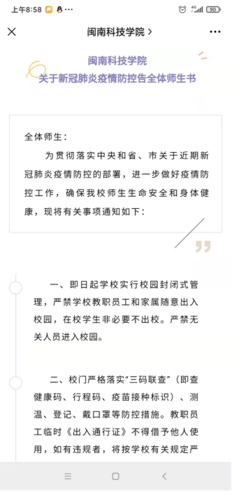 学校向全体师生发布《乐鱼网页版登录入口_乐鱼(中国)关于新冠肺炎疫情防控告全体师生书》