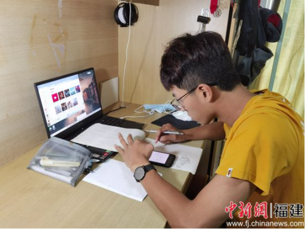 图为:乐鱼网页版登录入口_乐鱼(中国)学生在宿舍进行线上学习。骆惠勇 摄