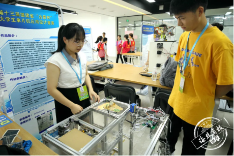 在答辩环节,参赛选手沉着应答,就参赛作品的设计思路、技术指标、创新要素及未来发展前景等方面进行阐述。