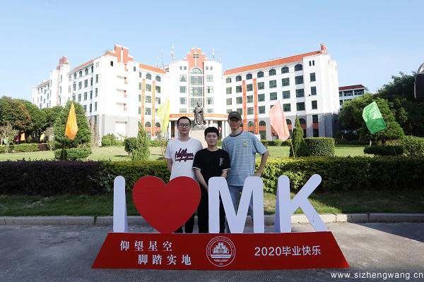 骆惠勇摄毕业生在毕业纪念墙前合影