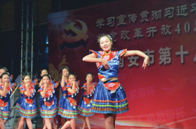 开场,一首经典励志歌曲《红日》就嗨爆全场。婉约优美的舞蹈《青岑碧海》、激情洋溢的朗诵《我爱你我的祖国》、饱含民族风情的民族舞《民族花瑶》、充满青春活力的走秀《万象更新》……精彩纷呈的文艺节目轮番上演,让市民大饱眼福,现场掌声此起彼伏。