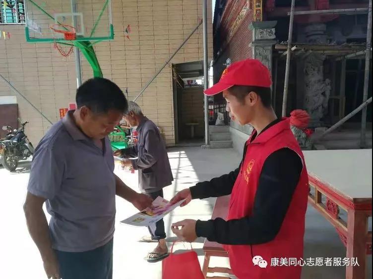 此次宣传活动覆盖全镇12个行政村,由于地域广,范围大,服务队特安排队员分成两个小组同时进行,一组宣传路线:康美村、梅园村、园内村、赤岭村、福铁村、兰田村;二组宣传路线:青山村、团结村、东旭村、梅魁村、梅星村、集星村。