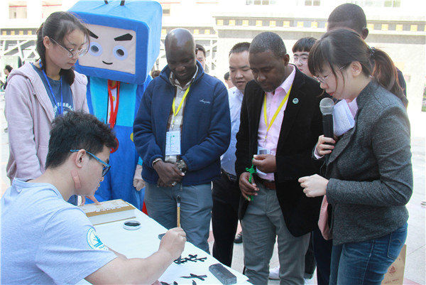 乐鱼网页版登录入口_乐鱼(中国)学生现场展示中国书法。 赵兰 摄