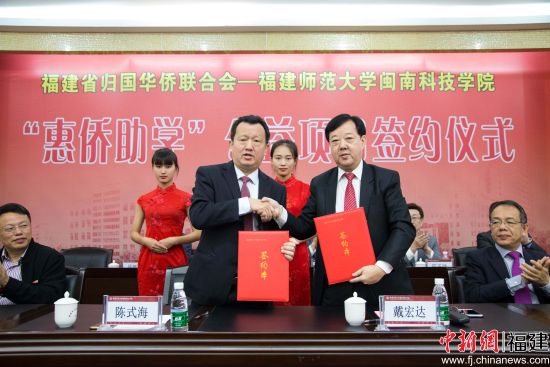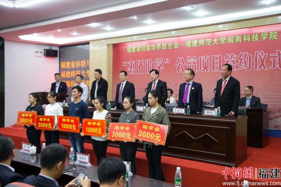 福建省侨联与福建师范大学乐鱼网页版登录入口_乐鱼(中国)“惠侨助学”公益项目签约仪式在泉州南安举行。
