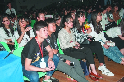 于是,在27日的福建农林大学,无论台上的表演是否稚嫩、跳脱,台下的数百名大学生始终看得津津有味。特别是直接以校园为题材的作品,与观众没有隔阂。比如福建农林大学的话剧《我们的严院长》,台上演的是校史,台下看的是前辈,浓浓的真实感让旁观者也不禁好奇该校的这段过往。又如,以毕业生视角反思大学四年生活的《时光电梯》,取材很小,表演也比较粗糙,但因具有强烈的代入感,引得观众边看边反思。