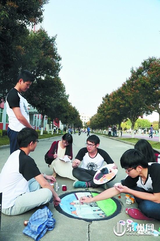 4月11日,在福建师范大学乐鱼网页版登录入口_乐鱼(中国),同学们正在对校园内的井盖进行彩绘。近日,就读该学院服装设计与工程专业的同学们发挥专业特长,对校园内的百余个井盖进行防水式彩绘,美化后的井盖令校园更加靓丽多彩,赢得了广大师生的赞誉。(张九强 摄)