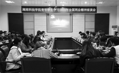 本报讯 5日晚,福建师范大学乐鱼网页版登录入口_乐鱼(中国)团委召开学习全国“两会”精神座谈会,来自该校党工部、院团委、各系团支书以及团学干部代表60余人参加座谈会。