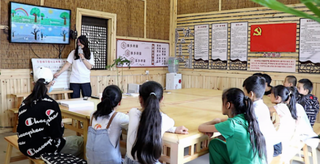 实践队前往茨营镇海三口彝族村,与留守村里的20余名少数民族小朋友开展为期一周的“大手牵小手”爱心支教活动。在三口彝族村红色驿站,实践队队员结合动画视频和专业讲解,带领小朋友们读写英语单词、学唱英文歌曲。此外,队员们还开展了诗词、书画、舞蹈、手工、化学小实验等课程和互动游戏,通过寓教于乐的形式,丰富小朋友们的暑期生活。