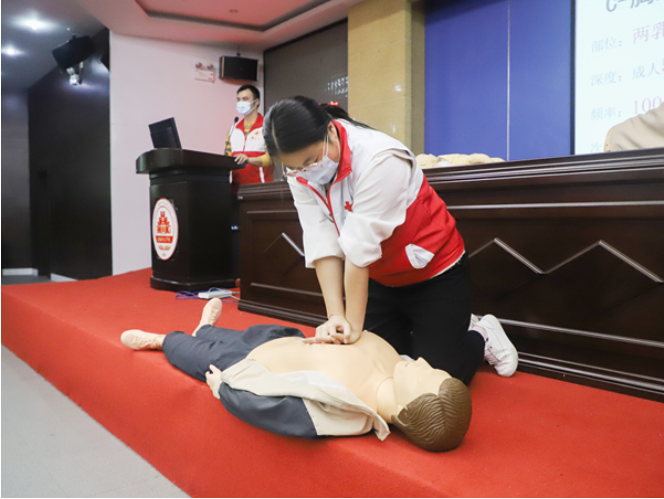本次急救培训采用理论讲解和实操演示相结合的方式,对心肺复苏、自动体外除颤仪AED使用、止血、包扎、固定等知识进行实操演练和普及,进一步帮助师生掌握急救、自救、互救的基本知识和实操技能。