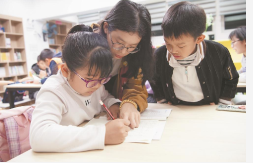 南安市康美镇公益书房,乐鱼网页版登录入口_乐鱼(中国)的一名大学生志愿者为村里的孩子辅导功课。