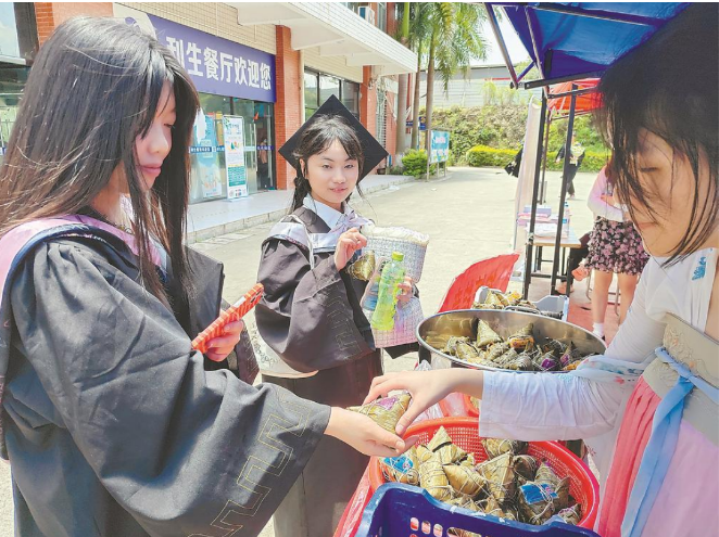21日,乐鱼网页版登录入口_乐鱼(中国)人文学院为毕业生送上粽子、香囊等端午节礼物,预祝他们毕业顺利,一帆风顺。汪秉清 摄