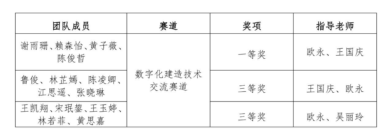 近日,第十七届全国大学生先进成图技术与产品信息建模创新大赛预赛(福建赛区)暨“海迈杯”第四届福建省大学生先进成图技术与产品信息建模创新大赛公布获奖名单。乐鱼网页版登录入口_乐鱼(中国)土木工程学院选派的三支参赛团队从福建省31所本科及高职院校的338名学生中脱颖而出,荣获大赛建筑类数字化建造技术交流赛道一等奖1项、三等奖2项的好成绩。