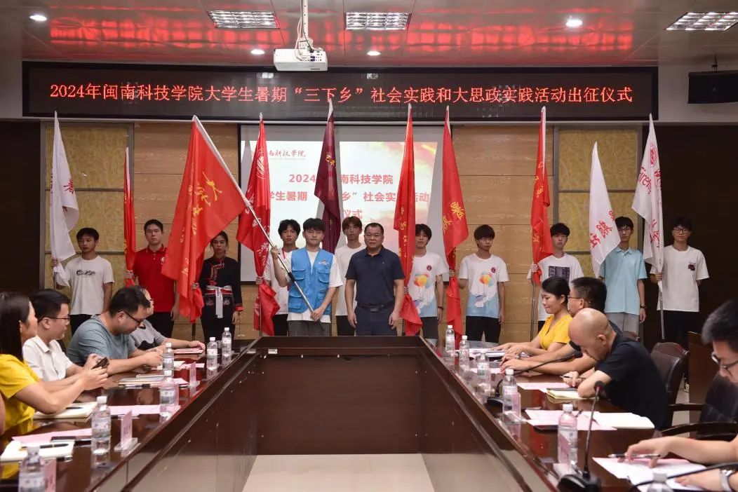 校党委副书记林树生为2024年暑期大学生“三下乡”社会实践队授旗