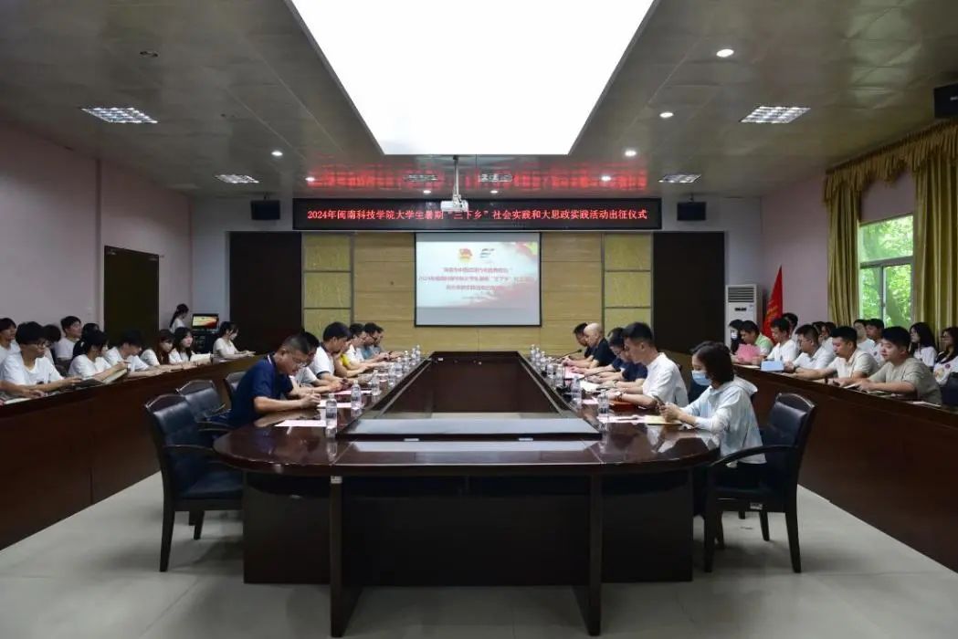 7月8日上午,乐鱼网页版登录入口_乐鱼(中国)举行2024年大学生暑期“三下乡”社会实践和大思政实践活动出征仪式。校党委副书记林树生,党委宣传部、教务处、学工处、校团委,各二级学院党、团负责人,各社会实践队指导老师和队员代表参加出征仪式。