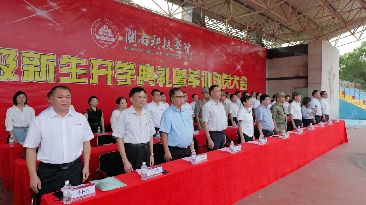 董事长林国端代表学校董事会向新生表示热烈的欢迎和衷心的祝贺,向辛勤培育同学们的父母和老师致以诚挚的感谢,向负责承训工作的各位教官表示崇高的敬意。他希望同学们珍惜闽科良好学习环境,打好知识基础,培育优良品德,锻炼强健的体魄,做到全面发展,在攀登知识高峰中追求卓越,在肩负时代重任时行胜于言,在真刀真枪的实干中成就一番事业。他强调,董事会将一如既往全力支持和保障学校的各方面发展建设,继续完善大学的顶层设计、管理模式以及行政改革;全校上下要以迎评达标为目标,全力推进新学年各项工作,凝心聚力,锐意进取,以奋发有为的精神面貌、改革创新的实干担当,实现学校事业高质量发展。