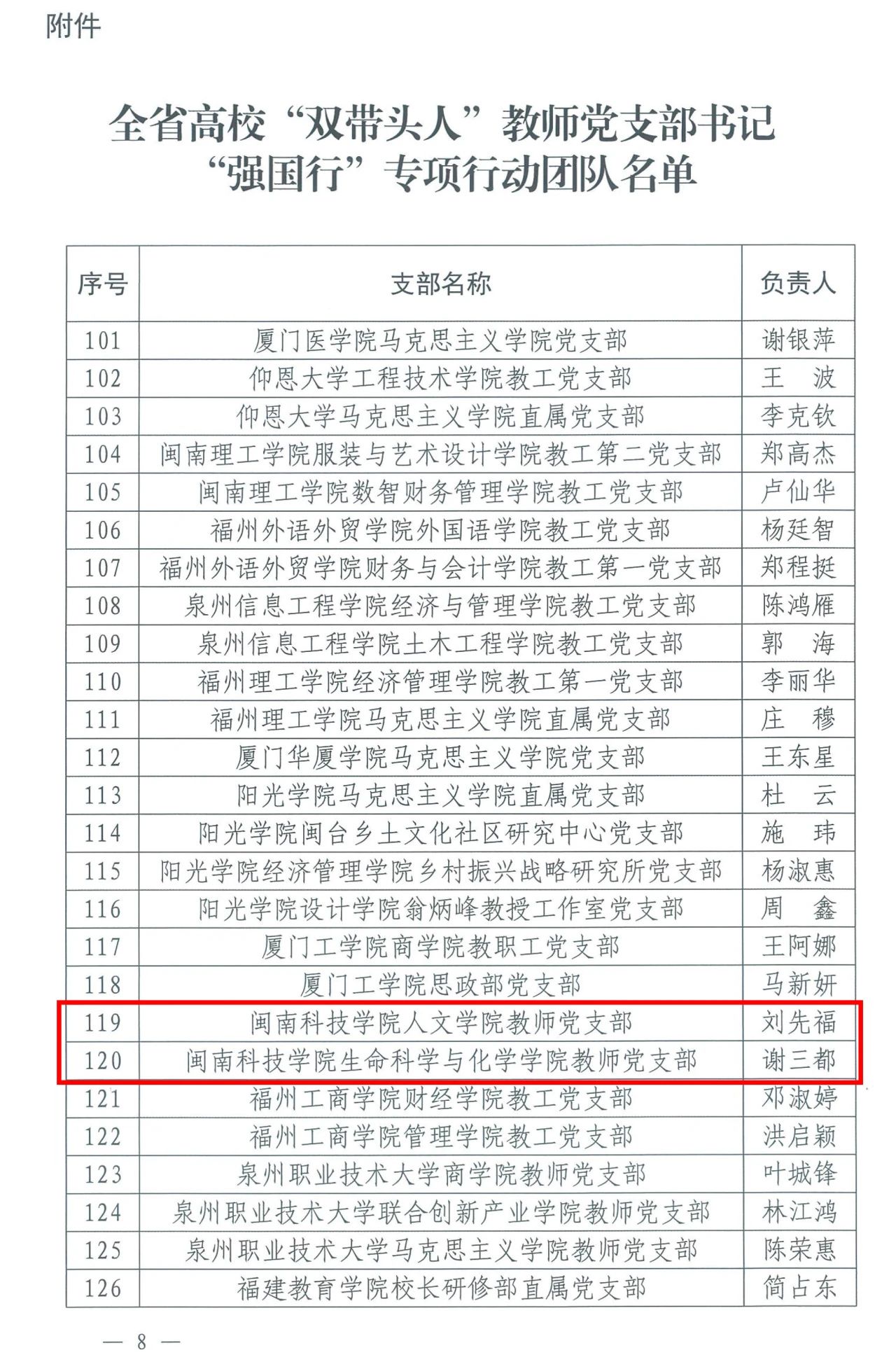 近日,中共福建省委教育工作委员会公布全省高校“双带头人”教师党支部书记“强国行”专项行动团队名单。乐鱼网页版登录入口_乐鱼(中国)人文学院教师党支部、生命科学与化学学院教师党支部入选全省高校“双带头人”教师党支部书记“强国行”专项行动团队。