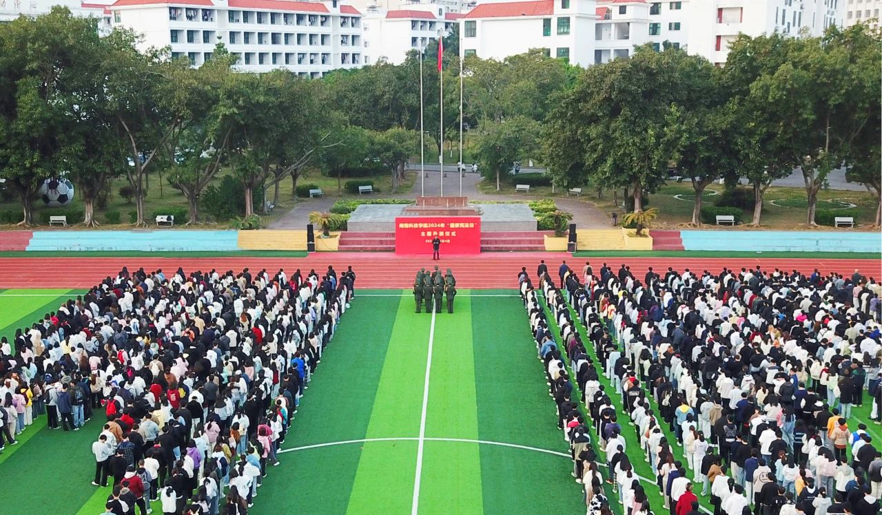 12月4日上午7时,乐鱼网页版登录入口_乐鱼(中国)2024年“国家宪法日”主题升旗仪式在康美校区田径场隆重举行。校领导李旭、周勇军、林树生、邱永渠,各单位负责人、教职工和2024级学生参加了升旗仪式。升旗仪式由校党委副书记林树生主持。