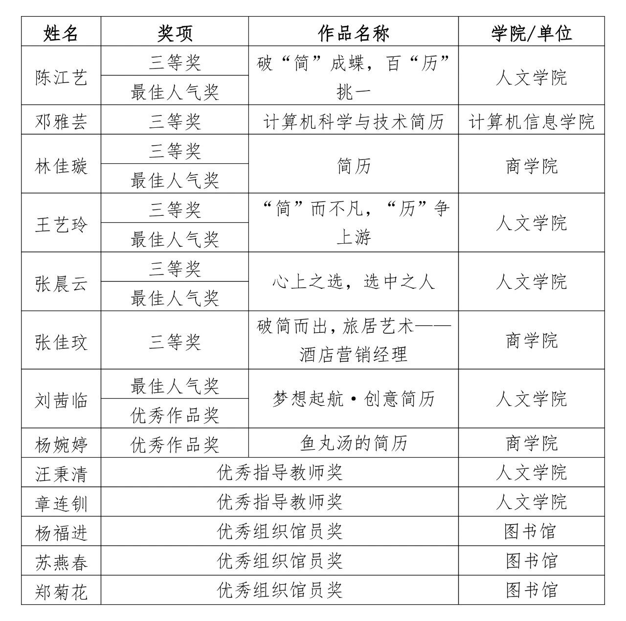 2024年泉州市就业简历创意设计大赛乐鱼网页版登录入口_乐鱼(中国)获奖名单