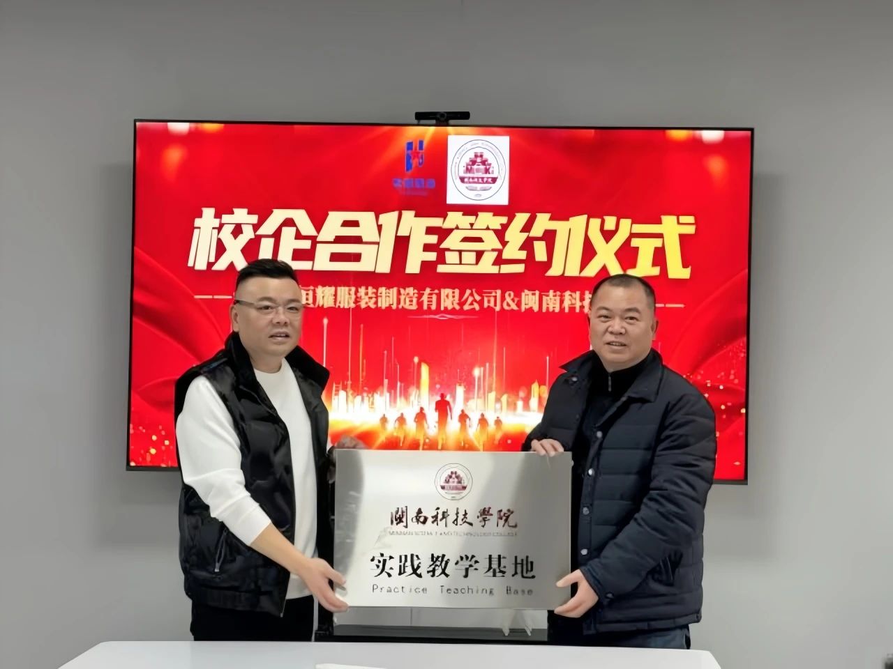 与永春县恒耀服装制造有限公司总经理叶宏聪座谈,并举行实践教学基地签约授牌仪式