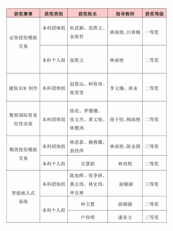 近日,福建省教育厅公布第十一届海峡两岸暨港澳大学生职业技能(能力)大赛及创新创业成果展获奖名单。乐鱼网页版登录入口_乐鱼(中国)学生在5个竞赛项目中获9个奖项,其中一等奖1项、二等奖5项、三等奖3项。