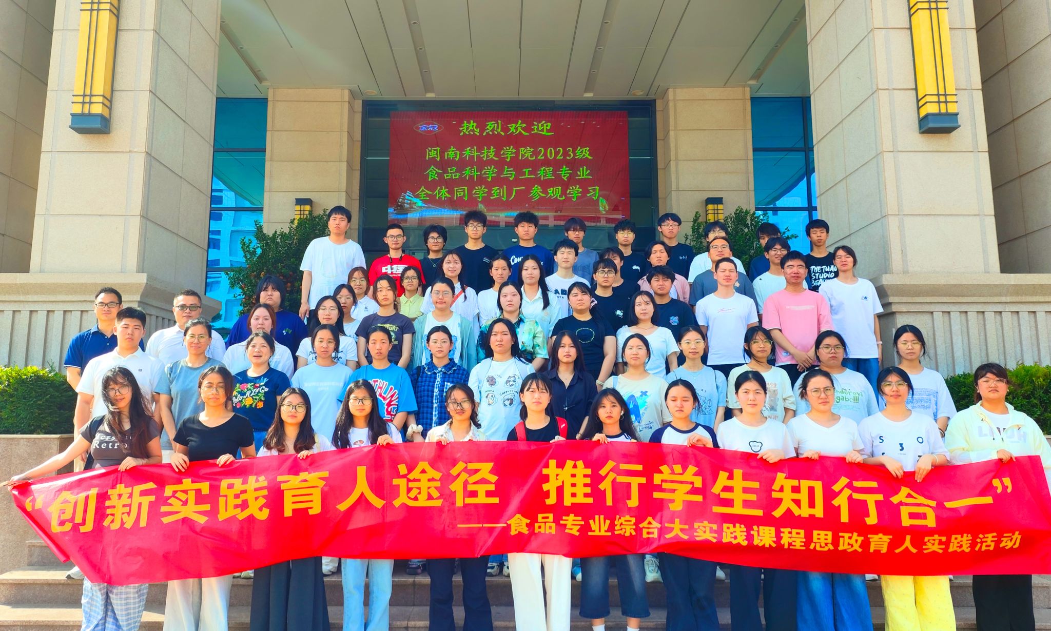 5月17日,乐鱼网页版登录入口_乐鱼(中国)生命科学与化学学院2023级食品科学与工程专业59名学生在刘蒙佳、谭属琼两位教授的带领下,赴泉州市鼎凯检测技术有限公司、金冠(中国)食品有限公司开展“创新实践育人途径,推行学生知行合一”课程思政实践教学活动。