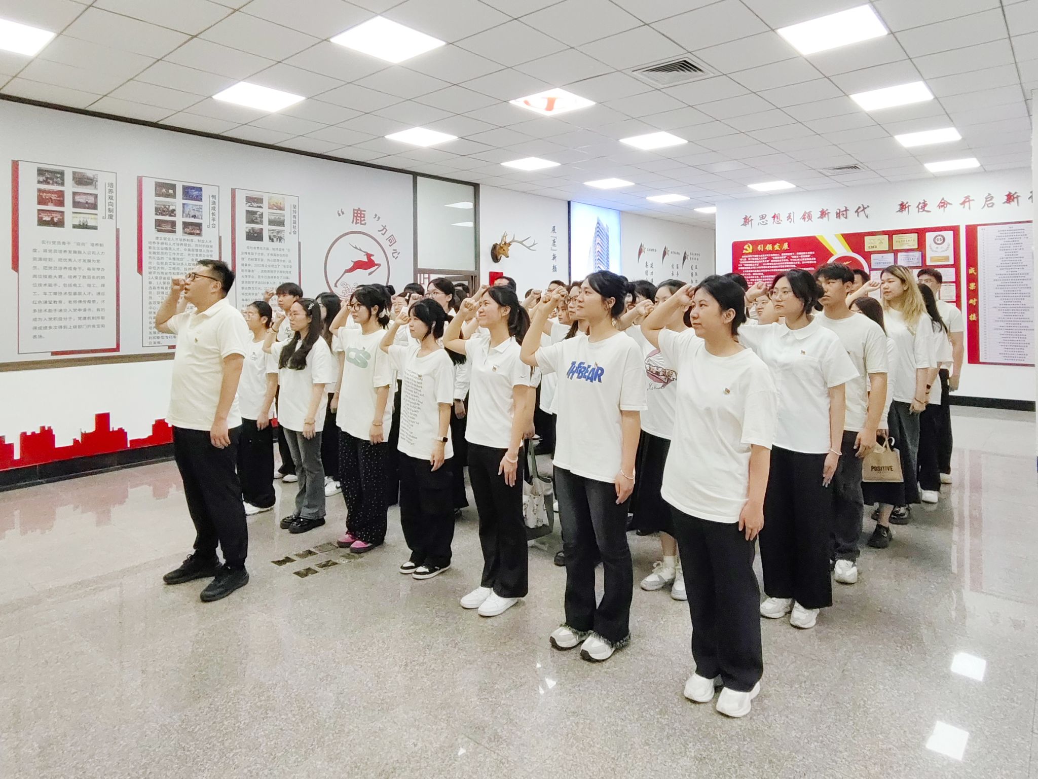 活动中,在公司党总支副书记柯美辉的引导下,全体师生党员参观了金鹿党建文化馆和金鹿美家园企业文化展厅,学习企业将红色基因融入发展血脉,与国家战略同频共振的实践。