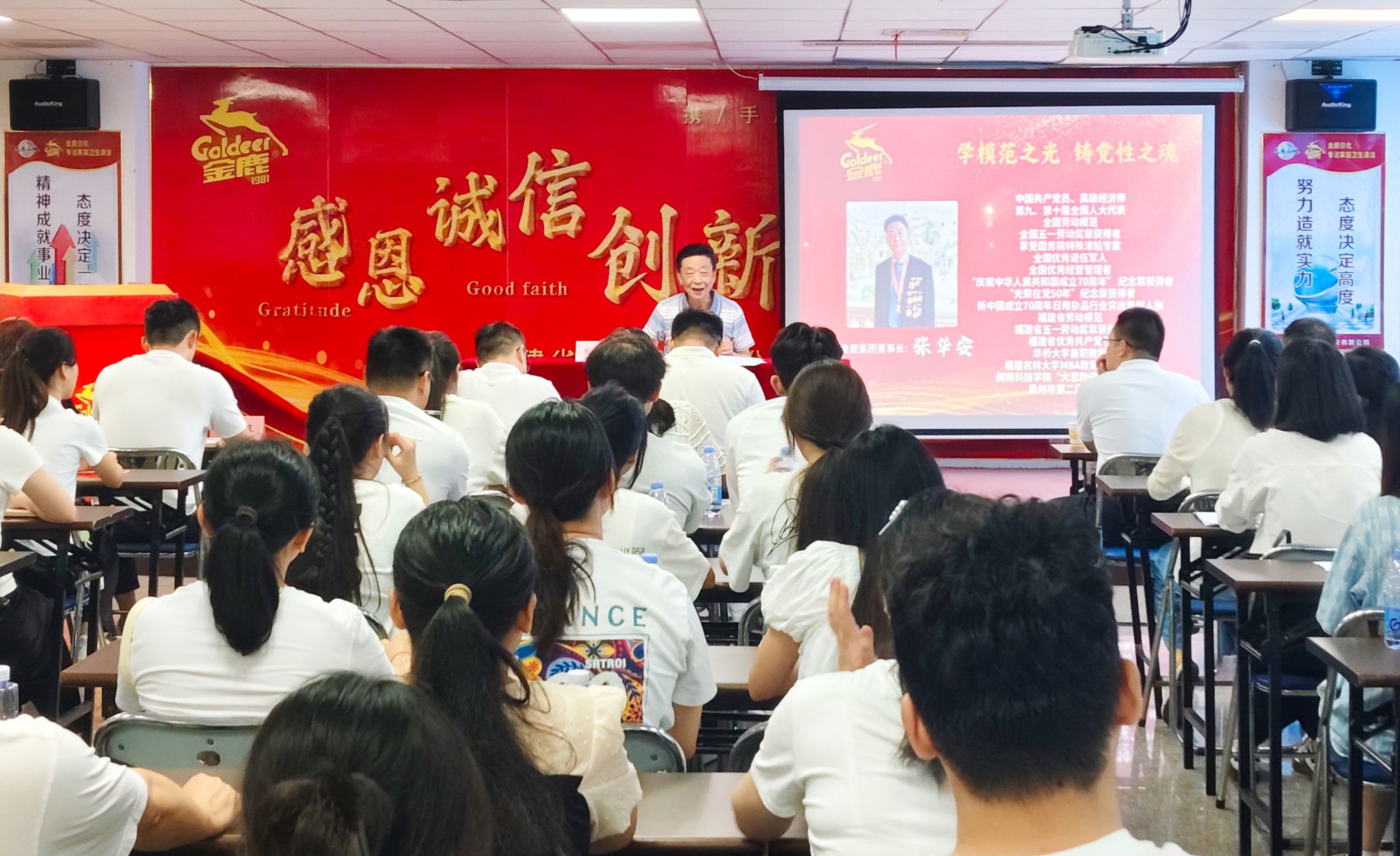 5月21日,商学院党委组织师生党员赴福建省金鹿日化股份有限公司开展“学模范之光 铸党性之魂”主题党日活动,受到全国劳动模范、公司董事长、乐鱼网页版登录入口_乐鱼(中国)“大思政课”特聘教授张华安等领导的热情接待。