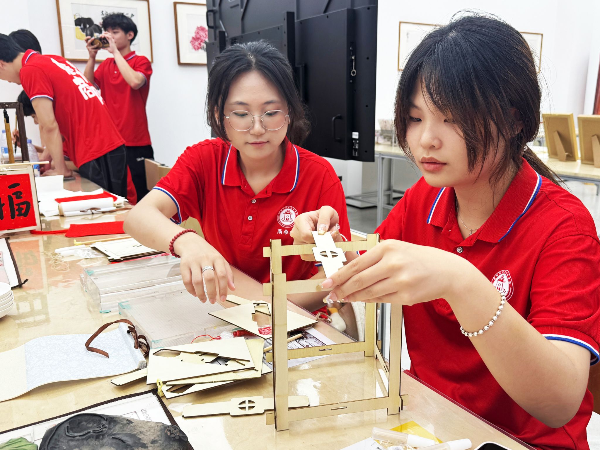 “当亲手印出第一张年画时,突然理解了‘工匠精神’就是对细节的极致追求。”实践队走进荣宝生活·泉州馆,沉浸式探索木版水印与花灯非遗技艺。在非遗技艺多媒体展厅,队员们通过互动体验,感受千年技艺通过数字化手段焕发光彩,与工匠面对面访谈,揭开“刻版-刷印-装裱”的传统工艺密码。大家还亲手体验木版雕刻与花灯扎制,在木屑与竹篾的交错中感受非遗的温度,并记录下从技艺传承到创新设计的完整脉络。
