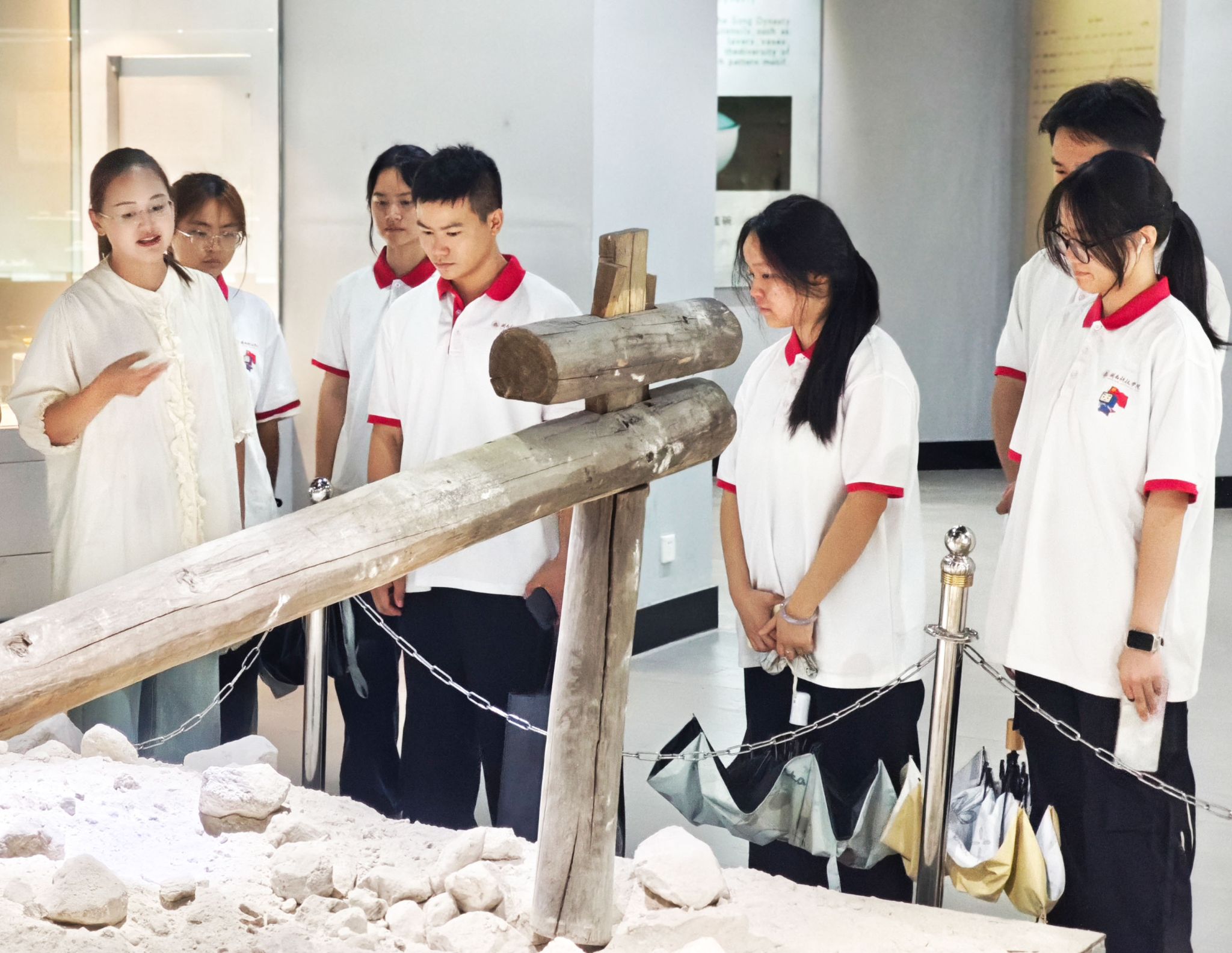 在德化陶瓷博物馆,队员们驻足于明代何朝宗款渡海观音像前,惊叹于“何派”雕塑的飘逸神韵;在互动体验区,通过AR技术“触摸”宋代龙窑的烧制场景,感受科技赋能下的文化传承新可能。在讲解员的带领下,大家系统了解了德化白瓷从唐宋兴盛到明清外销,直至当代复兴的千年发展史。