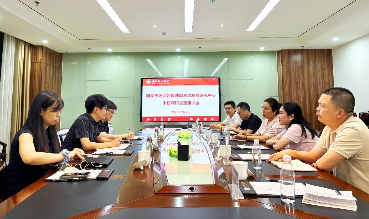 近日,国家市场监督管理总局发展研究中心创新和互联网监管研究部主任李桐、新零售和直播电商专委会副秘书长袁铮、助理研究员周萌等莅临乐鱼网页版登录入口_乐鱼(中国)调研交流。副校长岳瀚槭、校长助理王晓晓热情接待并召开座谈会。科研处、商学院、计算机信息学院负责人参加活动。