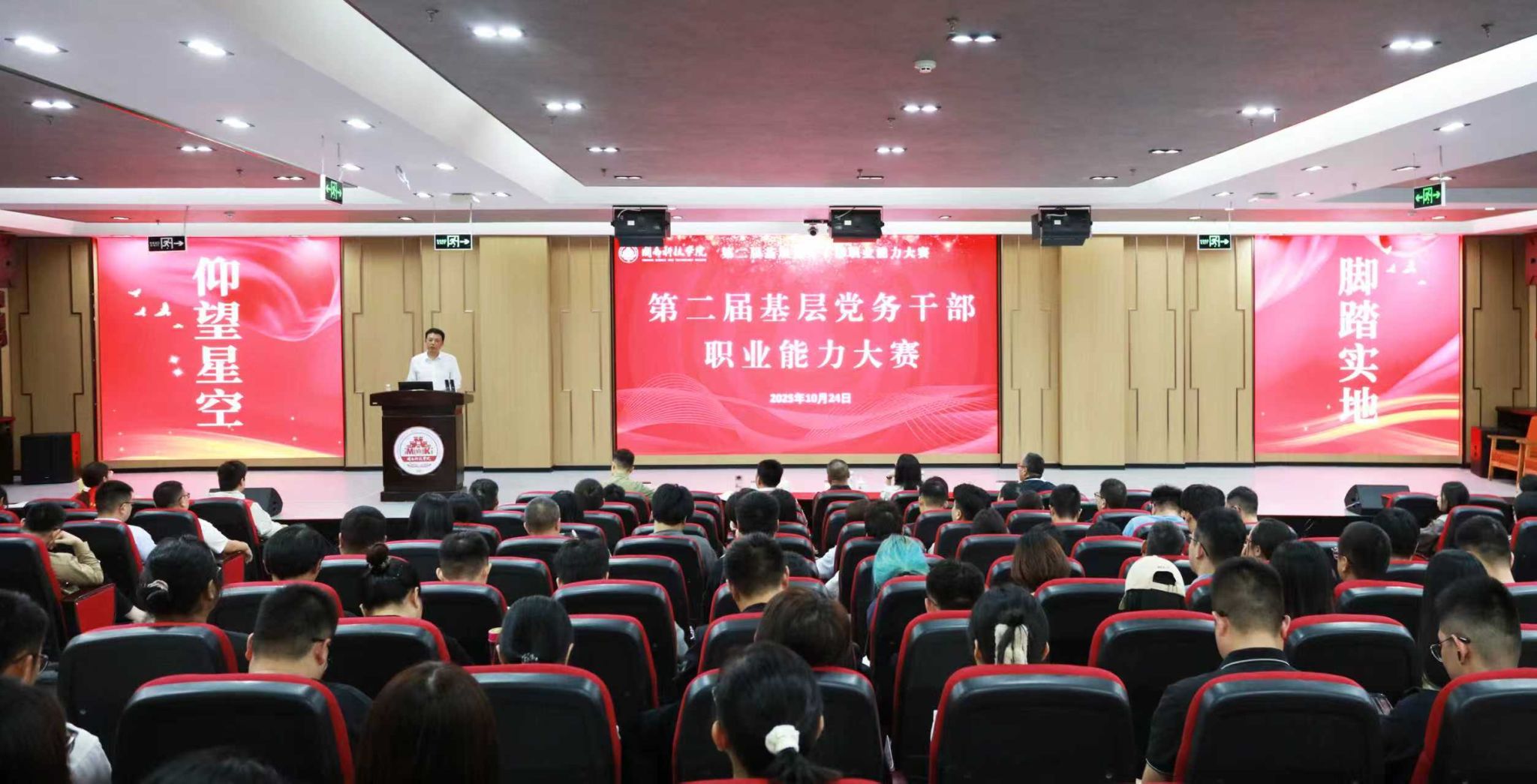 10月24日,大赛在图书馆学术报告厅圆满收官。校领导李旭、袁自煌、林树生,相关职能部门负责人、基层党务干部、党员代表等到场观摩大赛。校党委书记李旭致辞。
