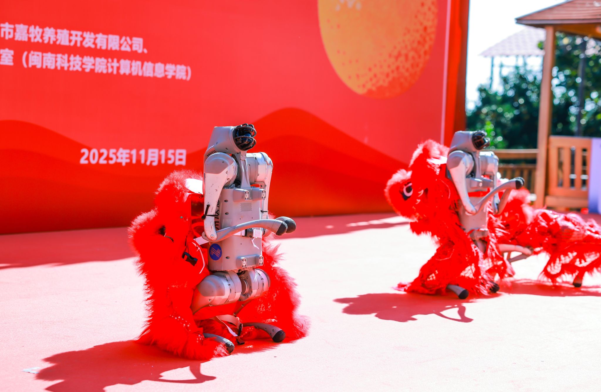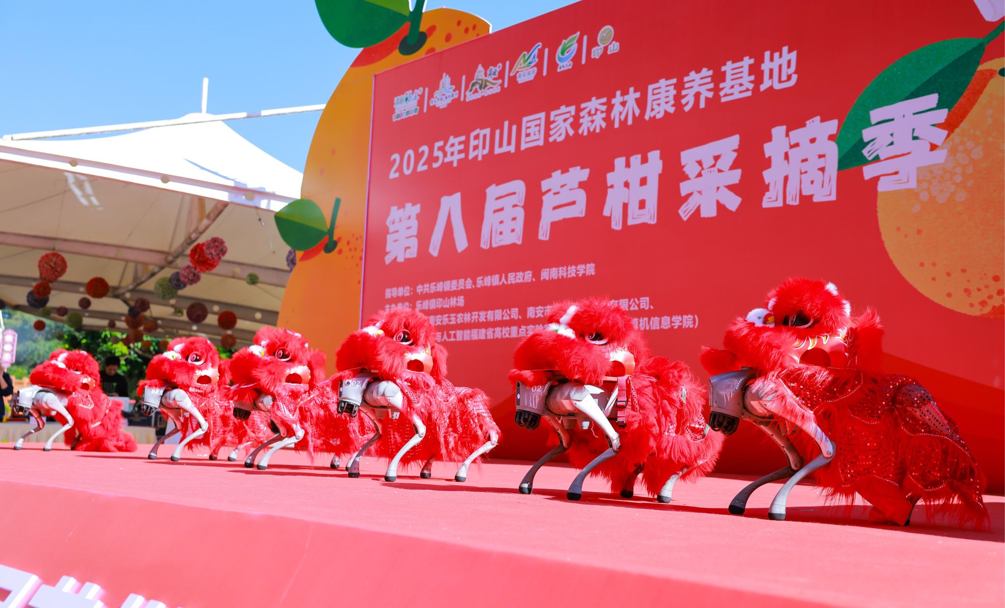 活动现场,6只身披红色狮子“马甲”的机器狗随音乐踏步、转圈、站立,灵活动作引来阵阵掌声。