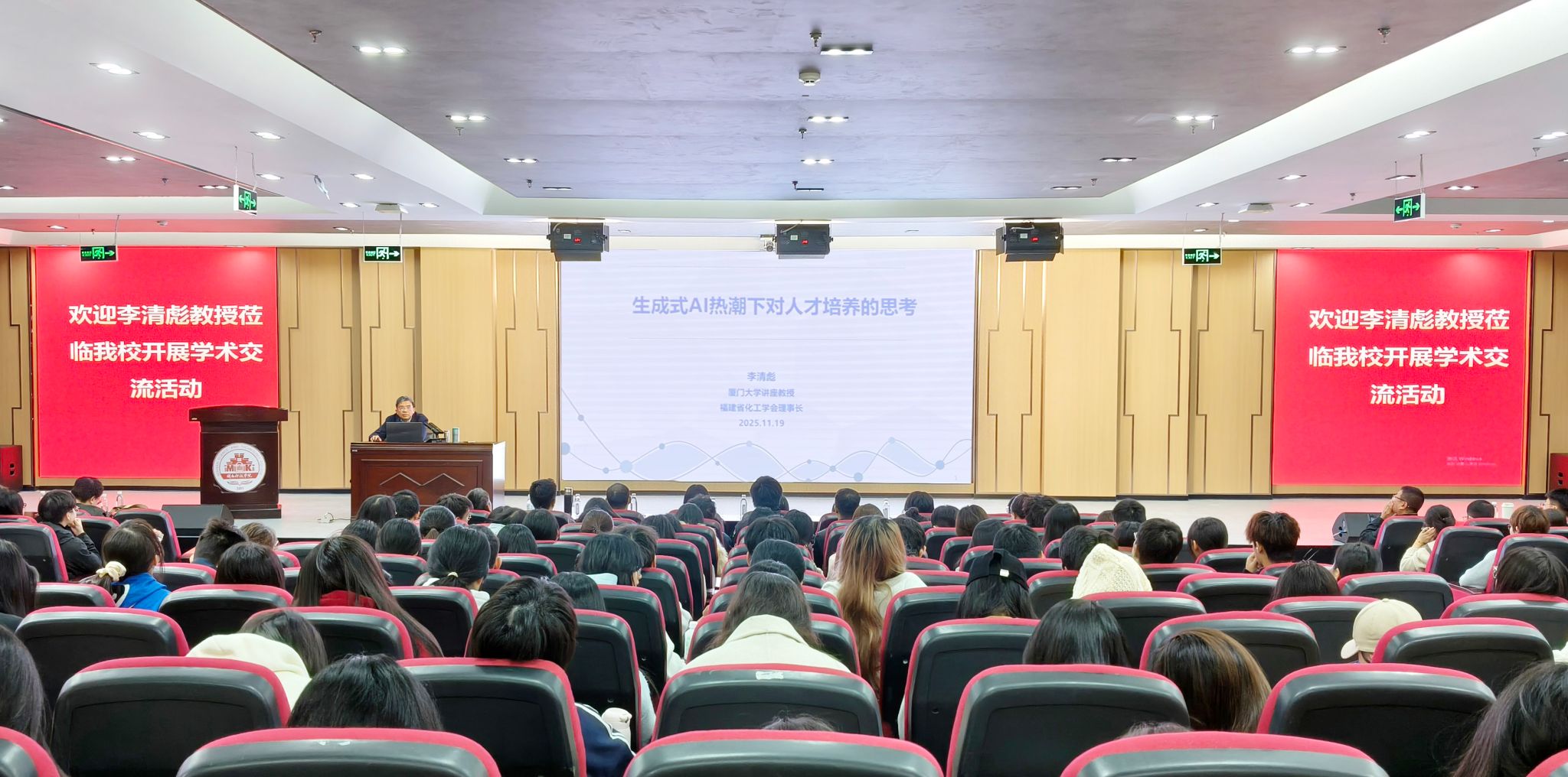 11月19日,中国化工学会会士、集美大学原校长李清彪教授应邀来校作题为“生成式AI热潮下对人才培养的思考”的学术讲座。生命科学与化学学院师生参加。校长袁自煌、校党委书记李旭会见了李清彪教授。