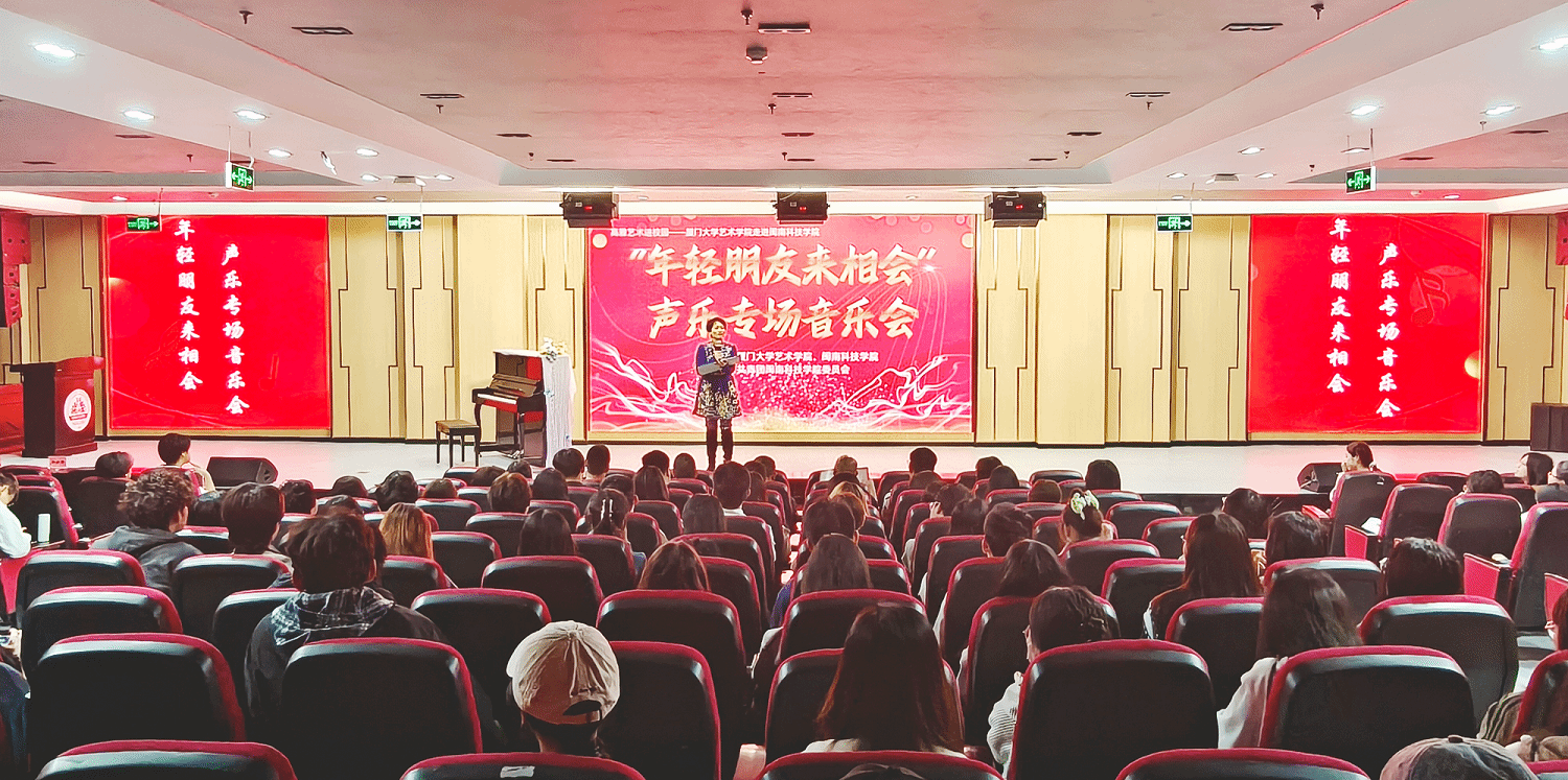 厦门大学艺术学院师生们先后倾情演绎了《春晓》《若我化成风》《The Vagabond》《Der Feuerrreiter》《幽兰操》《螃蟹调》《离别诗》《夜曲》《在水一方》《布谷鸟》《游击队歌》《城南送别》《年轻的朋友来相会》等歌曲。整场演出曲目丰富、风格多元,既有西方美声的浑厚典雅,亦不乏民族声乐的深情婉转,现场气氛热烈,掌声欢呼声不断。