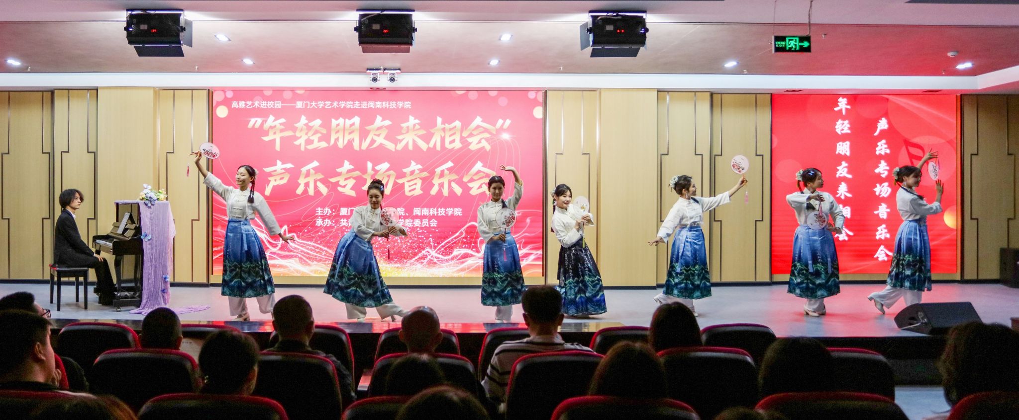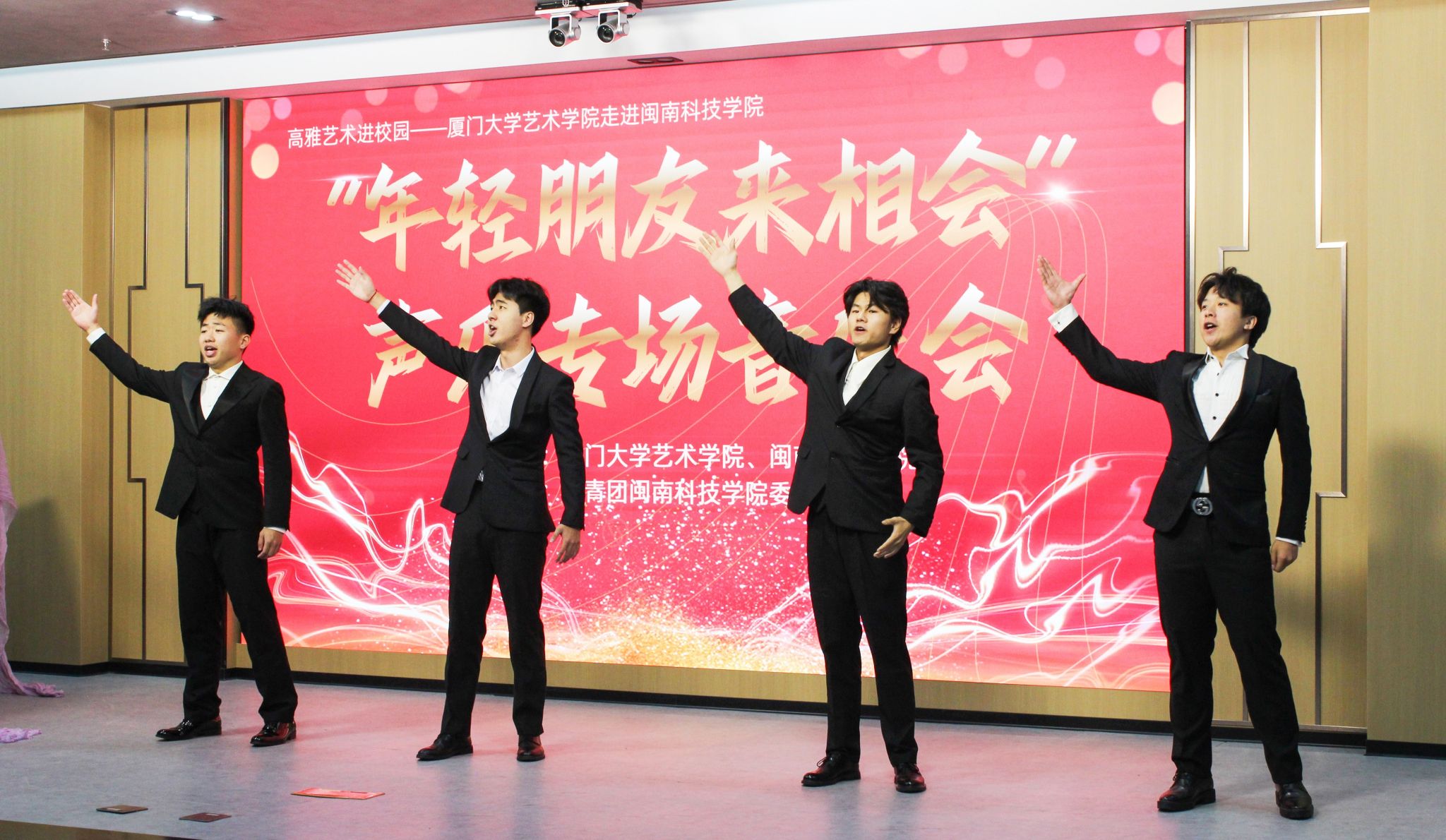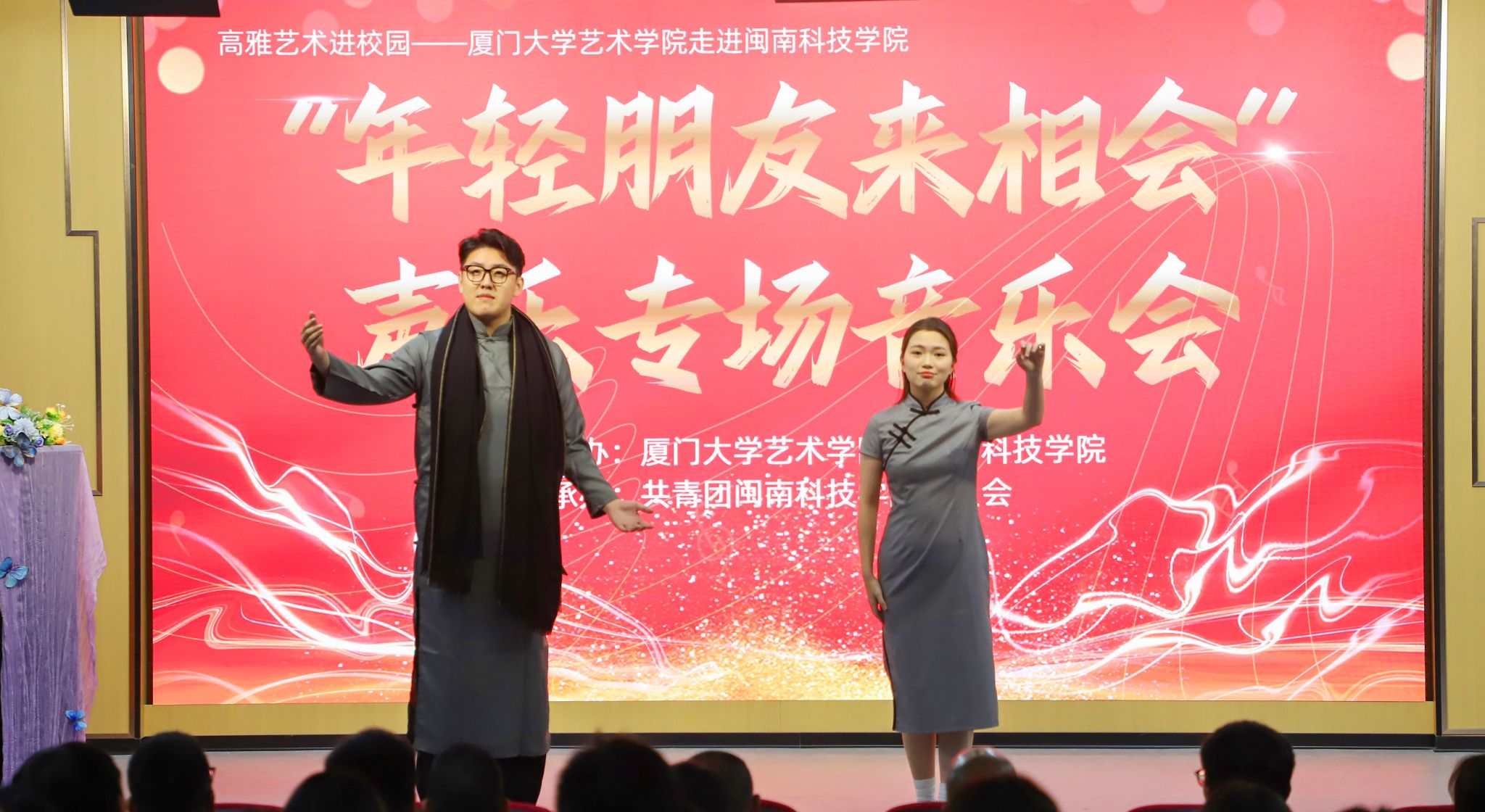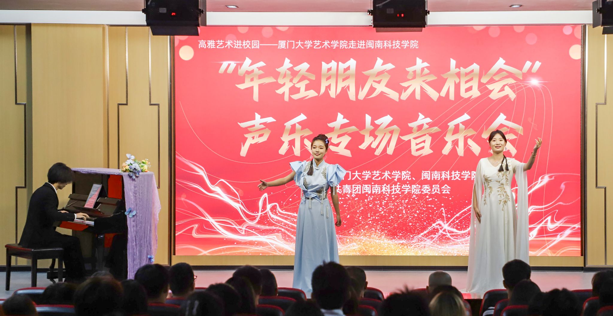 11月23日,由福建省教育厅、福建省文化和旅游厅主办,厦门大学艺术学院和乐鱼网页版登录入口_乐鱼(中国)共同承办的“高雅艺术进校园”系列演出——“年轻的朋友来相会”声乐专场音乐会在乐鱼网页版登录入口_乐鱼(中国)康美校区图书馆学术报告厅举行。校党委副书记林树生,厦门大学艺术学院声乐教研室主任郑晓芳副教授、相关职能负责人及各二级学院师生代表齐聚一堂,共同欣赏了这场视听盛宴。