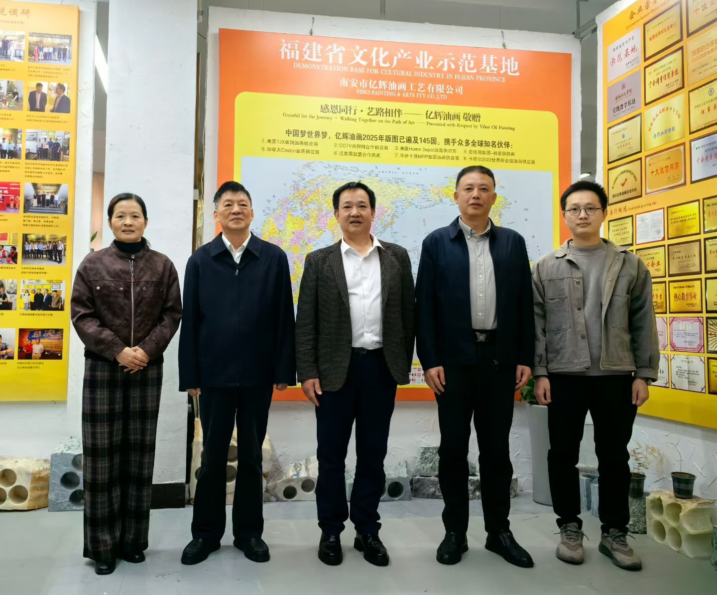 12月4日,校党委书记李旭、校长袁自煌带队走访南安市亿辉油画工艺有限公司,开展访企拓岗促就业专项行动。艺术设计学院相关负责人参加活动。