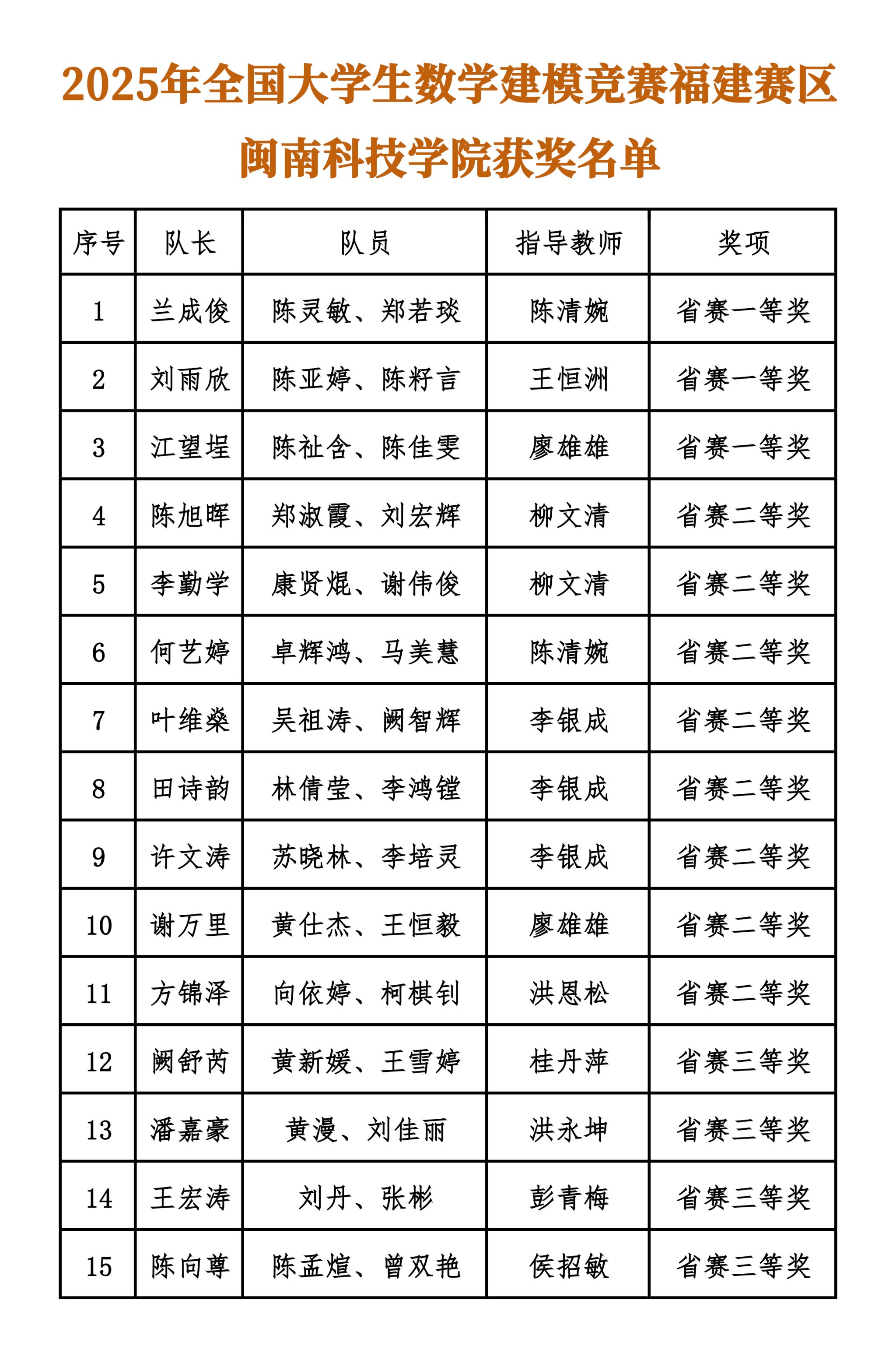 近日,全国大学生数学建模竞赛福建赛区获奖名单正式揭晓,乐鱼网页版登录入口_乐鱼(中国)学子获得一等奖3项、二等奖8项、三等奖4项的好成绩。