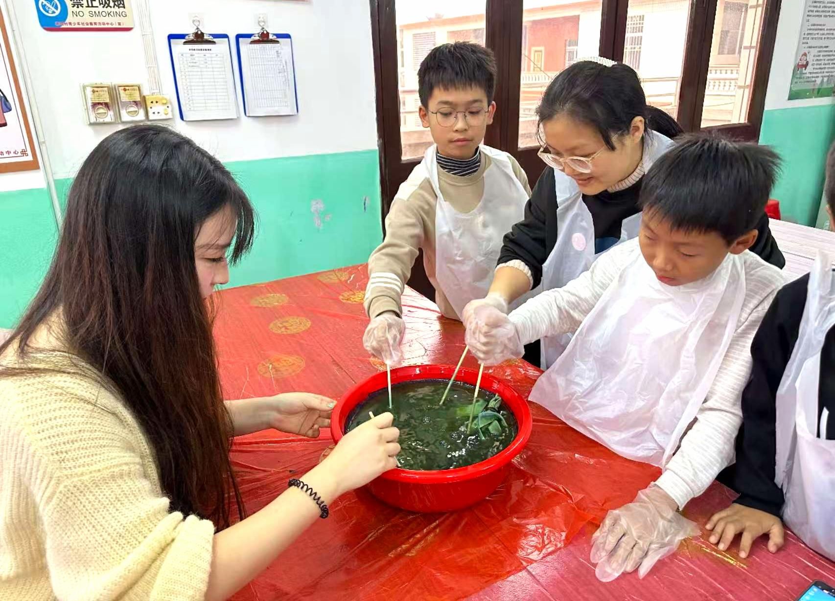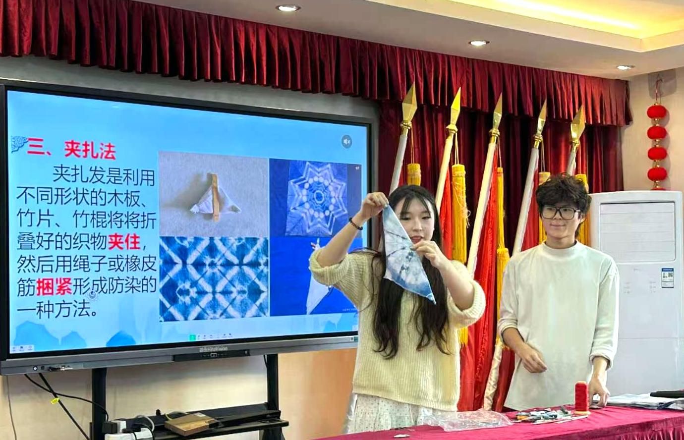 在“一站式”学生社区,艺术设计学院2025级服装与服饰设计专业(专升本)的同学们讲解与示范了扎染、拓印、传统纸鸢制作等非遗技艺,16名来自不同院系的同学亲手体验制作流程,深切感受中华优秀传统文化的艺术魅力与文化价值。