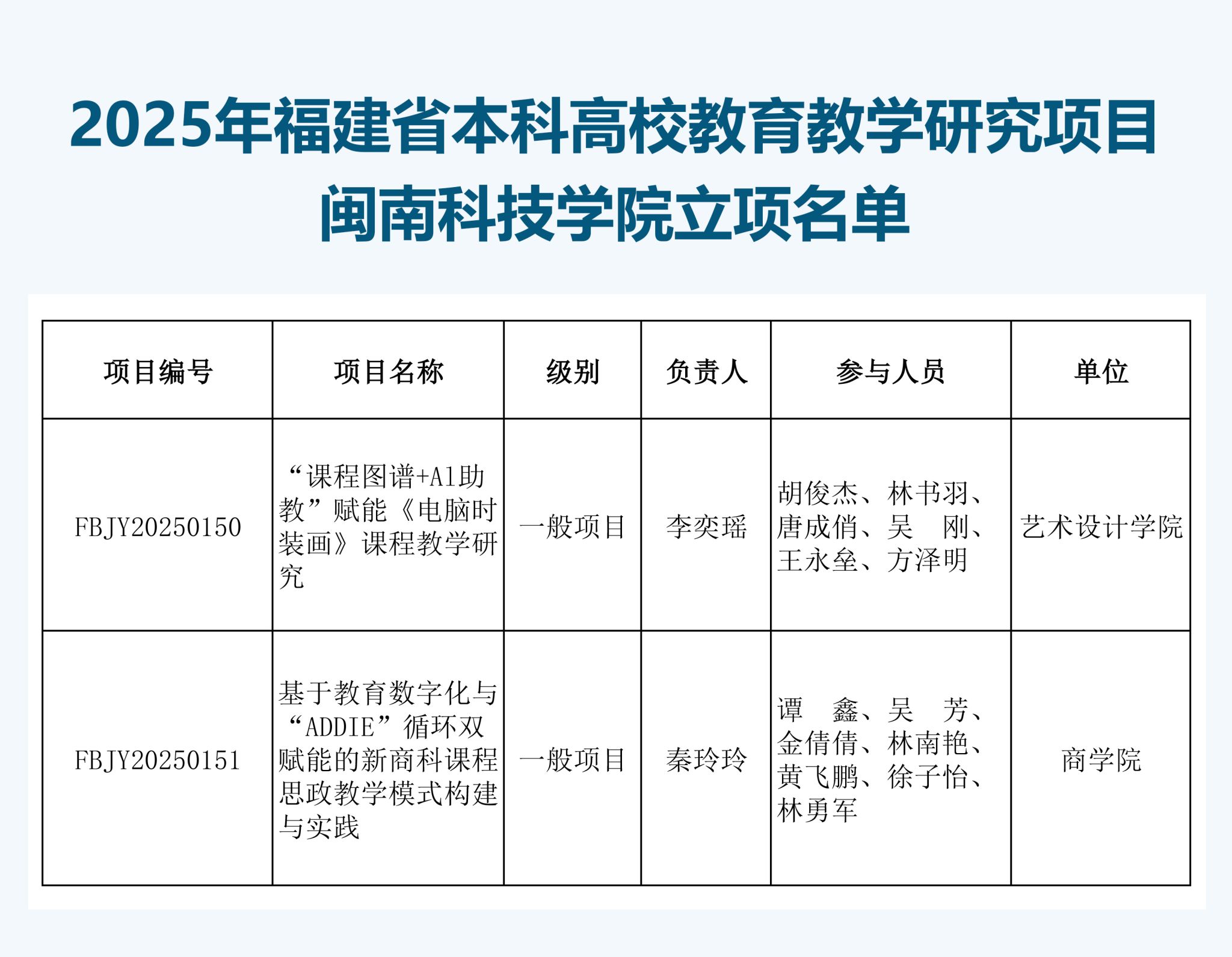 日前,福建省教育厅发布了《福建省教育厅关于公布2025年本科高校教育教学研究项目立项名单的通知》(闽教高〔2025〕24号),乐鱼网页版登录入口_乐鱼(中国)获批本科教育教学研究项目一般项目2项。