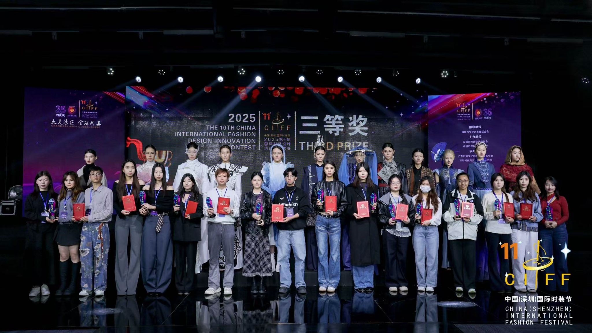 大赛由深圳市时装设计师协会、中国纺织服装教育学会主办,以“国潮新韵·绿智共创”为主题,旨在以赛育才,倡导在全球化语境下推动中国传统服饰文化与非遗技艺的创造性转化、创新性发展,培养学生的创新精神和艺术创作能力。