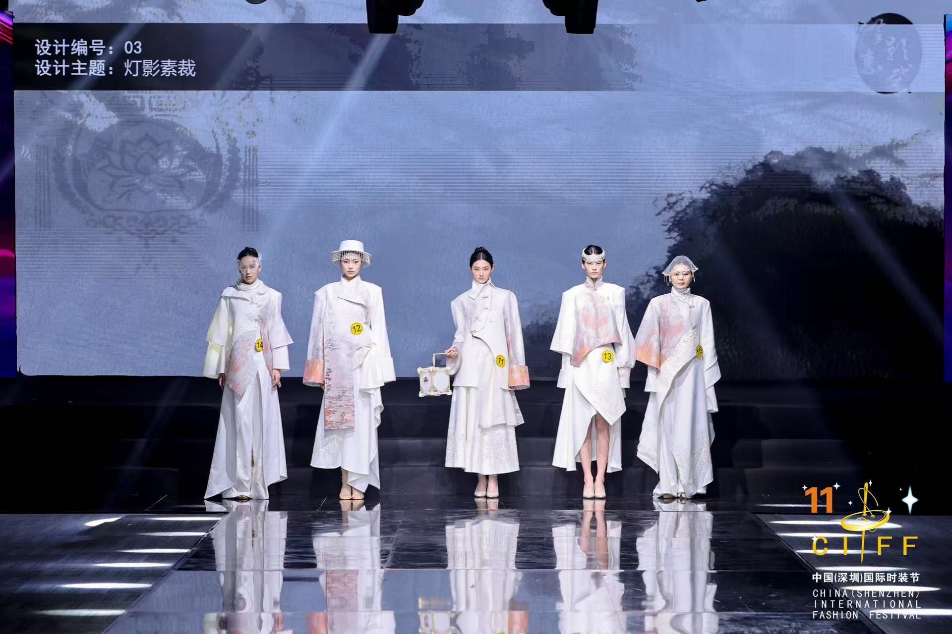 《灯影素裁》系列以非物质文化遗产珠灯为创意锚点,借由“素裁”之白与“灯影”之韵,构建传统工艺与现代设计的对话场域。整体系列以极简色彩托举文化重量,以当代时装语言重塑珠灯工艺的精神内核,让非遗之美在素白裁片间流转,在传统与先锋的碰撞中,完成一场关于文化传承与时尚表达的诗意实践。