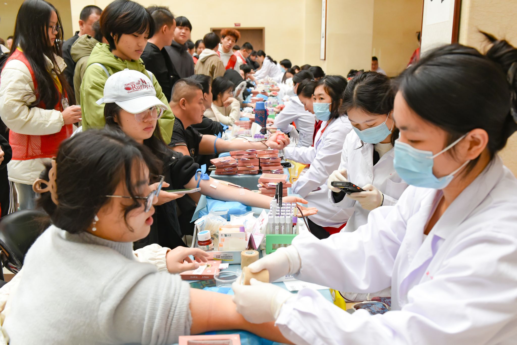 活动现场热烈有序,志愿者提供献血咨询、信息录入、体检采血全流程贴心服务,各环节衔接流畅。医护团队专业严谨开展采血工作,现场配备暖心茶点、休息座椅与应急物资等。据统计,本次活动共有441名师生成功献血,总献血量突破12.4950万毫升,师生们用行动诠释公益精神,点滴热血凝聚成温暖生命的爱心洪流。