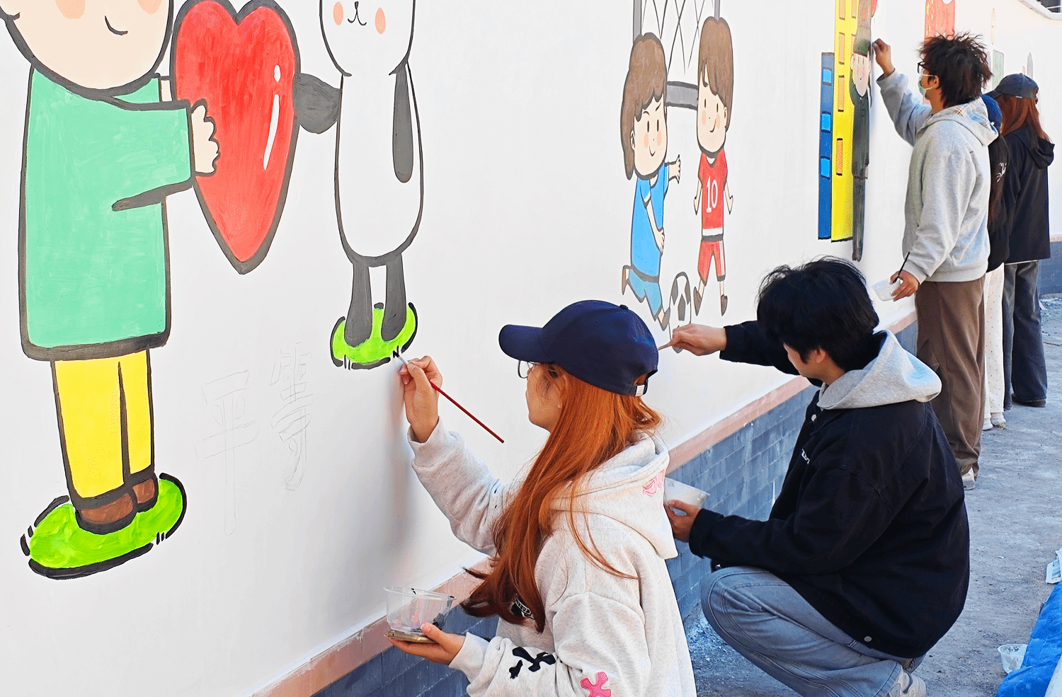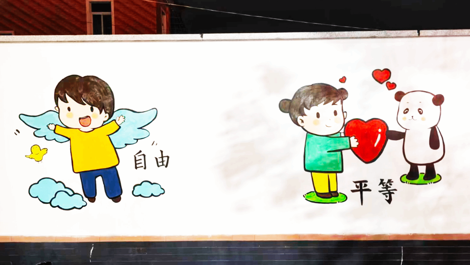 在露江村委,实践队以“执青春之笔,‘绘’就乡村振兴新画卷”主题,聚焦“党建文化”“社会主义核心价值观”“中华优秀传统文化”“反腐倡廉”内容,以110余平方米墙面为载体,运用漫画、标语、传统纹样等艺术形式,将文明新风、廉洁理念、党建精神融入乡村景观。原本朴素的墙面焕然一新,成为传播正能量、涵养乡风民风的文化阵地,吸引不少村民驻足观看、打卡留念。