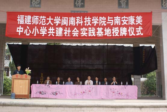 4月16日上午,乐鱼网页版登录入口_乐鱼(中国)康美中心小学大学生社会实践基地授牌仪式在康美中心小学隆重举行。康美镇有关领导,康美中心小学全校师生和我院师生代表参加了授牌仪式。学院领导肖华山副院长代表学院向康美中心小学授牌,党总支赖忠泉副书记在授牌仪式上作了发言。
