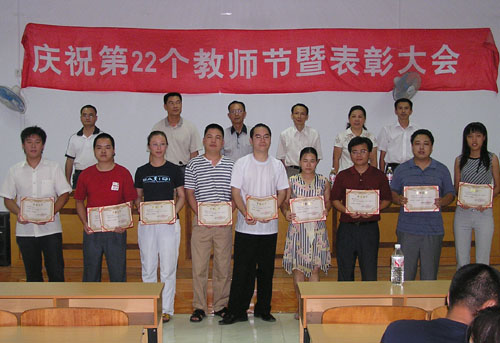 2005—2006学年“三育人”先进个人:陈孔吉、傅金波、江永贞、曾富珍、张燕斌、邱有冬、韩静、张惠强、陈范武、杨福进。