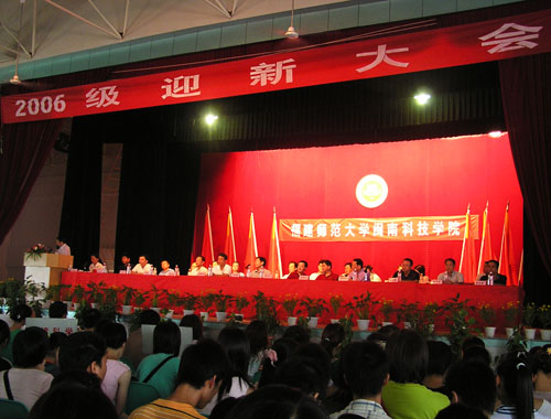 9月10日,乐鱼网页版登录入口_乐鱼(中国)在学生活动中心隆重召开迎新大会。福建师范大学副校长、博士生导师汪文顶教授及相关部处领导,乐鱼网页版登录入口_乐鱼(中国)董事长戴宏达、常务副董事长戴新民、名誉董事长林国端、法人代表戴宽南及部分董事、南安市副市长戴爱国及有关领导,乐鱼网页版登录入口_乐鱼(中国)名誉院长陈兰孙及学院党政领导,全体新生及教师参加了大会。大会由刘静书记主持。