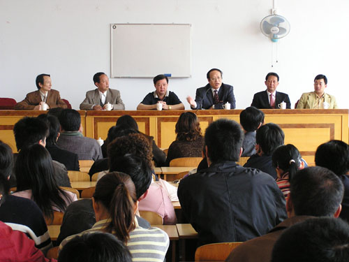 会上,学院领导汇报了“十一五”规划及招生工作等,李建平对此项工作提出了要求。