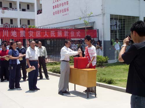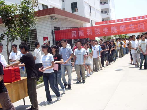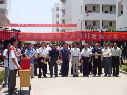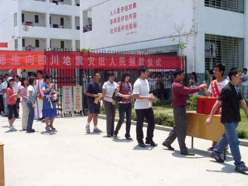 中午12点,老师和同学们刚下完课没顾得上吃饭,就有序的聚集在学生社区门口,参加在那里举行的为四川地震灾区捐款活动。 活动现场,一条醒目的横幅“汶川——乐鱼网页版登录入口_乐鱼(中国)师生和你心连心”深深吸引和感染着在场的每一个人,此时此刻这也许就是我们大家最想说的话。在院工会和团委分别宣读了捐款倡议书后,捐款活动开始了,我院全体党政领导走在最前面带头捐款,随后,各系、部、学生各团支部、学生个人也都有序的献出爱心。短短的十几分钟里,共捐款79977.6元。院党委常务副书记刘静指出这只是我院的首笔捐款,接下去还将继续组织师生通过捐钱捐物、义务献血等形式献出爱心。